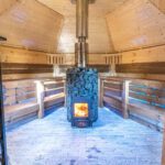 Détendez-vous dans notre sauna finlandais au feu de bois, pour un moment de chaleur authentique et apaisante.